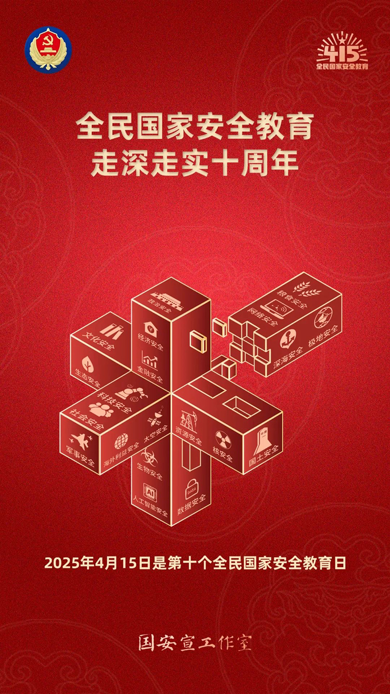 “4·15”全民國家安全教育日丨一起學習國家安全知識 更新時間:2025-04-15 點擊:950 所屬欄目:公司新聞 2015年7月1日實施的《中華人民共和國國家安全法》第十四條規(guī)定:每年4月15日為全民國家安全教育日。 2025年4月15日是第十個全民國家安全教育日,今年的主題是:全民國家安全教育,走深走實十周年。下面我們一起學習相關知識吧!