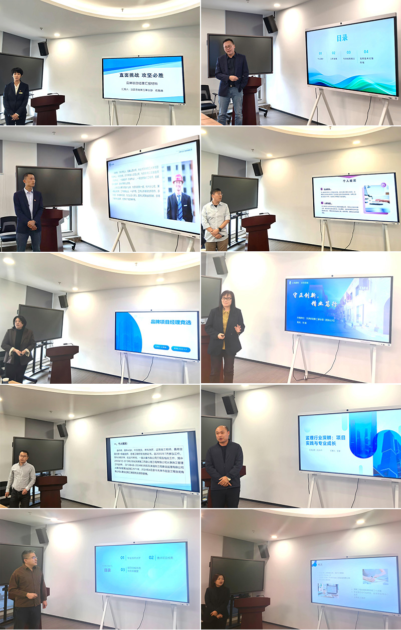 作為本次培訓(xùn)的重要環(huán)節(jié),第二屆品牌項目經(jīng)理、品牌專業(yè)負責人評選于 11 月 7 日下午正式拉開帷幕。10 名候選人按業(yè)務(wù)板塊依次登臺,通過 10 分鐘 PPT 述職闡述,全面展示自身在項目管理、專業(yè)技術(shù)、團隊建設(shè)等方面的成果與經(jīng)驗。候選人中,既有深耕招投標代理領(lǐng)域的資深從業(yè)者,也有專注造價咨詢、工程監(jiān)理的專業(yè)骨干,還有擅長項目管理、前期咨詢的復(fù)合型人才。他們結(jié)合具體項目案例,分享在成本控制、風險化解、客戶溝通等方面的實戰(zhàn)心得,展現(xiàn)出扎實的專業(yè)功底與出色的綜合素養(yǎng)。此次評選融入到品牌項目經(jīng)理培訓(xùn)中,通過 “以賽促學(xué)、以評促優(yōu)” 的方式,為核心技術(shù)骨干搭建了交流學(xué)習的平臺,促進了各專業(yè)板塊優(yōu)秀經(jīng)驗的共享與傳承。