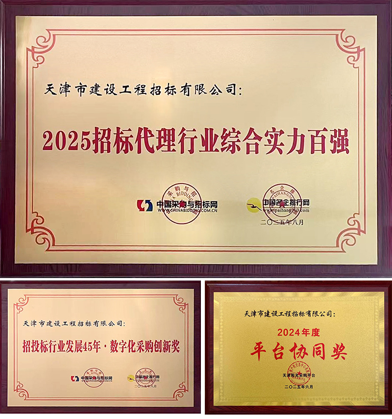天津咨詢所屬天津市建設(shè)工程招標(biāo)有限公司憑借深耕招標(biāo)代理領(lǐng)域35年的深厚積淀和高品質(zhì)的服務(wù),榮獲中國(guó)采購(gòu)與招標(biāo)網(wǎng)“2025招標(biāo)代理行業(yè)綜合實(shí)力百?gòu)?qiáng)”企業(yè)和“招投標(biāo)行業(yè)發(fā)展45年·數(shù)字化采購(gòu)創(chuàng)新獎(jiǎng)”。在中國(guó)土木工程學(xué)會(huì)建筑市場(chǎng)與招標(biāo)投標(biāo)研究分會(huì)發(fā)布的《2024年度工程招標(biāo)代理行業(yè)發(fā)展報(bào)告》中,招標(biāo)公司排名靠前,位列全國(guó)工程招標(biāo)代理機(jī)構(gòu)第48名,天津市第1名。憑借在推動(dòng)區(qū)域公共資源交易高效融合中突出表現(xiàn),招標(biāo)公司還榮獲天津陽(yáng)光采購(gòu)平臺(tái)“2024年度平臺(tái)協(xié)同獎(jiǎng)”。