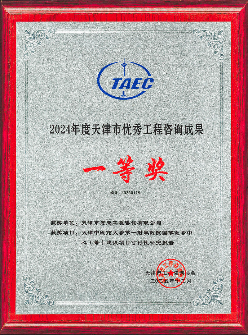 喜報 天津咨詢所屬宏亞公司榮獲2024年度天津市優(yōu)秀工程咨詢成果一等獎